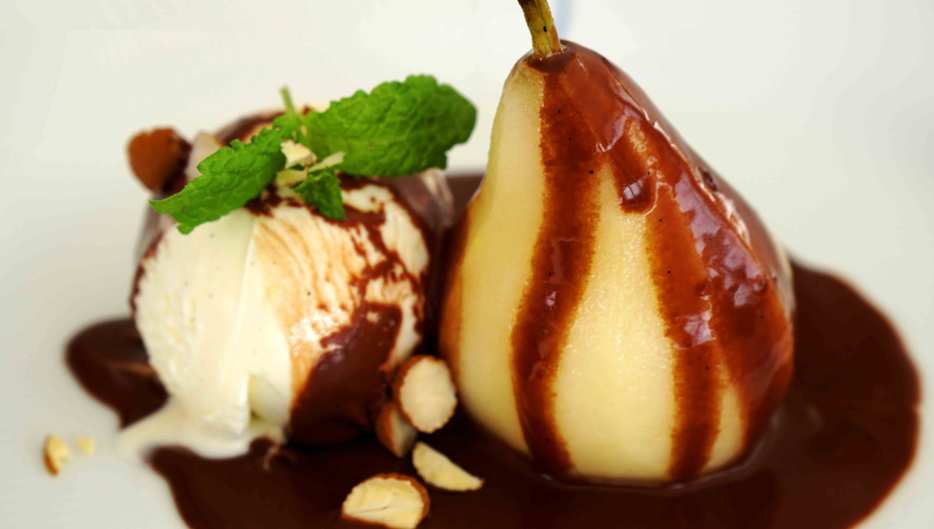 Hrušku - hlavní ingredienci desertu "Krásná Helena" legendárního šéfkuchaře hotelu Ritz Augusta Escoffiera, moučníku s hruškou pošírovanou v cukrové lázni, podávané s vanilkovou zmrzlinou, kandovanými fialkami, to vše přelité čokoládou, který byl pojmenován La Belle Hélène na počest světové premiéry operety Jacquese Offenbacha v 19. století v Paříži - tam nevnímám ani při opakovaném zkoušení.