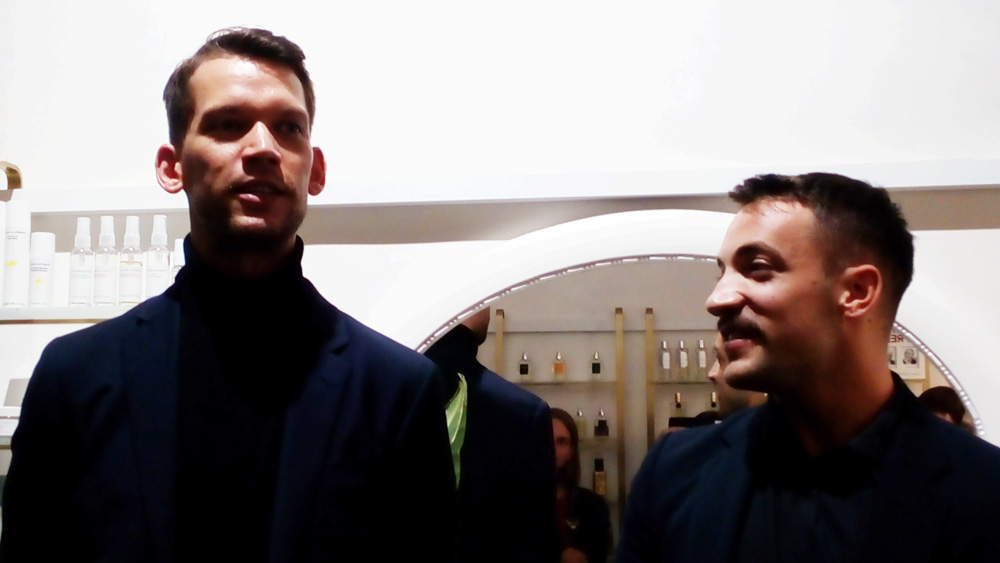 Když jsem vešla do Vavavoom, hned na první pohled bylo jasné, že dnešní večer bude jiný. V nezvykle potemnělém interiéru byly reflektory nasměrovány pouze na flakóny vůní Pigmentaria - Ad Libitum, Erotikon a Murmur. A zatímco majitelka butiku Lucie Levenson a její kolegové vítali příchozí, Jakub Hiermann a Tomáš Ric z Pigmentarria už živě diskutovali. I přes to směrované osvětlení však bylo zřejmé, že Pigmentarium není jedinou hvězdou večera. Paní Lucie hojně přijímala gratulace, květiny, drobné dárečky, srdečně se zdravila s přáteli, kteří na třetí narozeniny nečekaně dorazili z daleka.