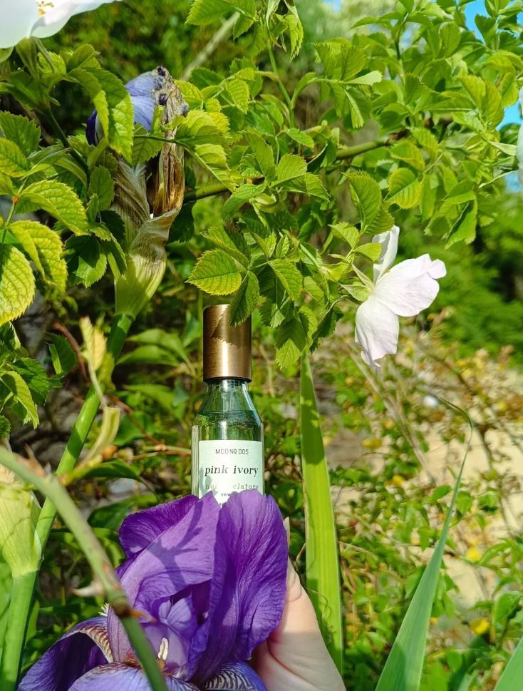 Popisek k parfému na jejích stránkách k ní říká: "cukrová vata v ledničce, estetika akvarelu, třpytky lisované do skla, první krok na růžovém písku, Marie Antoinetta v mikro minisukni." A ještě přidává atributy jako: "snění, klid, laskavost, ukotvení, prosluněná písčitá pláž..." To všechno chci, toužím po tom. A co říká můj nos? První dojem se raduje z dřevitě drhnoucího kosatce. Druhý ke kosatci přidává čajovou vůni. Třetí má pocit, že pije oblíbenou Vineu. Čtvrtý odhaluje kosmetickou vůni šamponu. A pátý možná rozklíčoval některé hráče - cashmeran, galaxolide, damascone beta, a ethyl maltol. Vědět neznamená být šťastný.