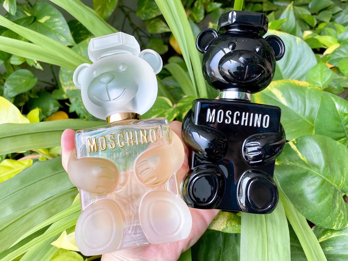 Ikonický medvídek Moschino, korespondující s hravostí a drzostí značky, se poprvé objevil v roce 1988 na přehlídkovém mole v podobě malých černých šatů s kloboukem a límečkem vyrobeným výhradně z plyšových hraček. V roce 2014 byla představena Toy, svěží unisexová vůně levandule zabalená ve skleněné lahvičce ukryté uvnitř plyšového medvídka.